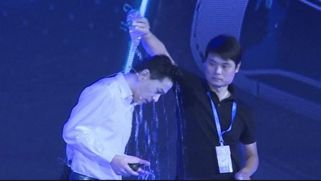 李彦宏演讲时被泼水