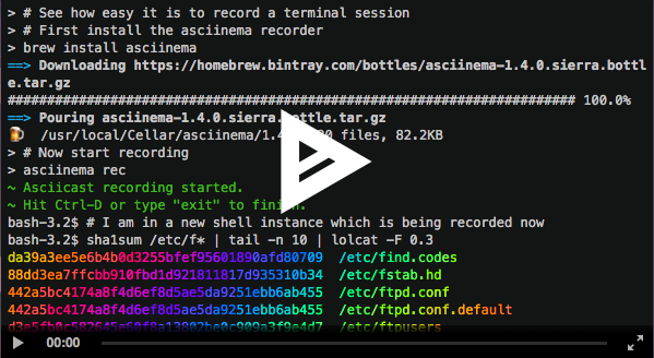 asciinema 是一个录制命令行操作的软件,可以作为一个视频播放,其中的操作也可以被复制。